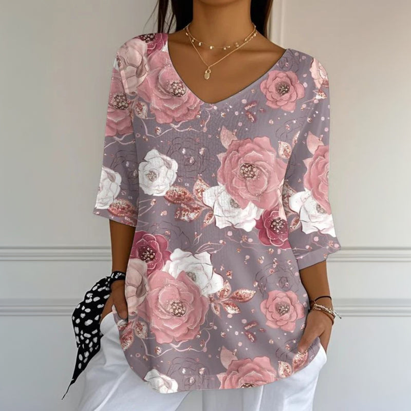 Bluza W Stylu Vintage Kwiatowy Nadruk