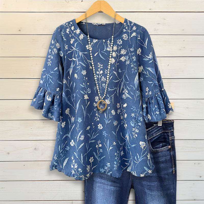 【Długie Rękaw】 Vintage Kwiatowa Bluzka