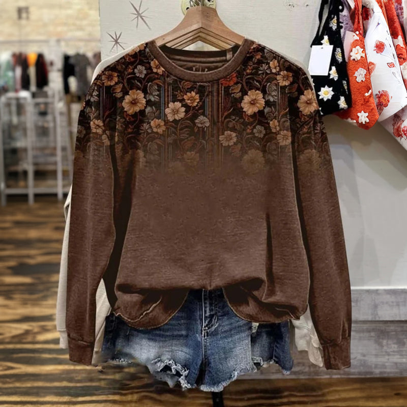 【Długi Rękaw】Koszulka Z Nadrukiem W Kwiaty W Stylu Vintage